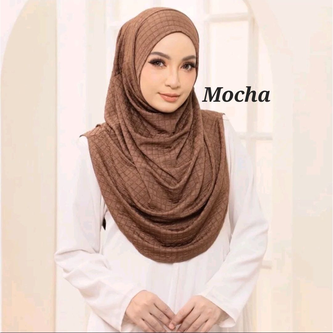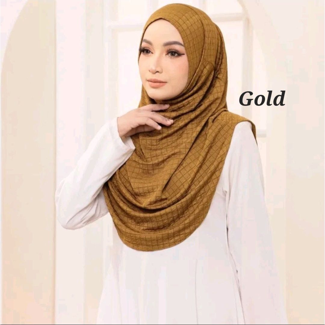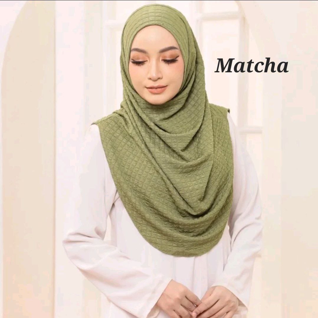 Fabric: The hijab is made from HQ Check Box Premium fabric. This is a high-quality material with a structured yet soft feel. The "Waffle" pattern likely refers to a trendy, geometric print that adds a modern touch to the classic hijab style. Ironless material.