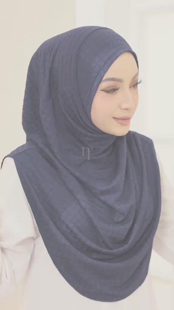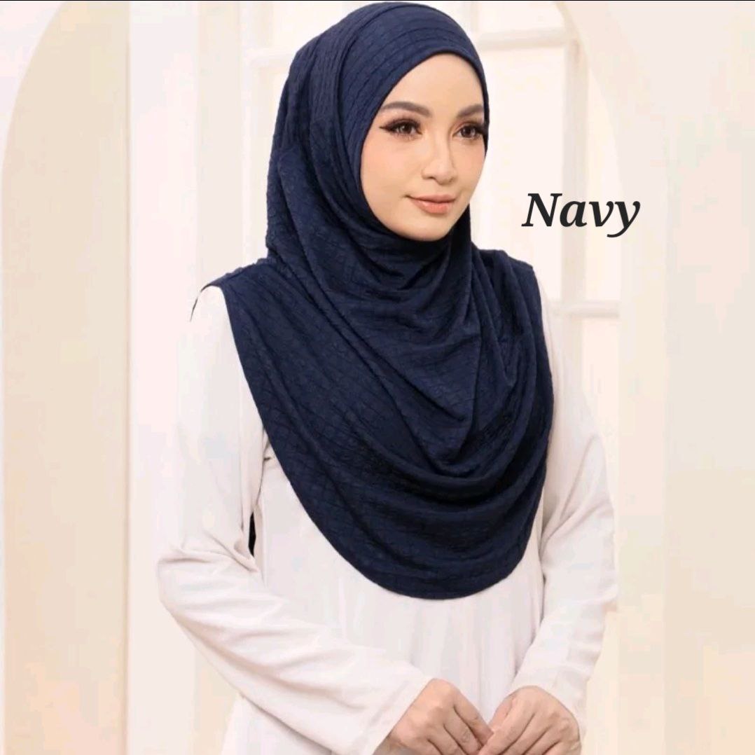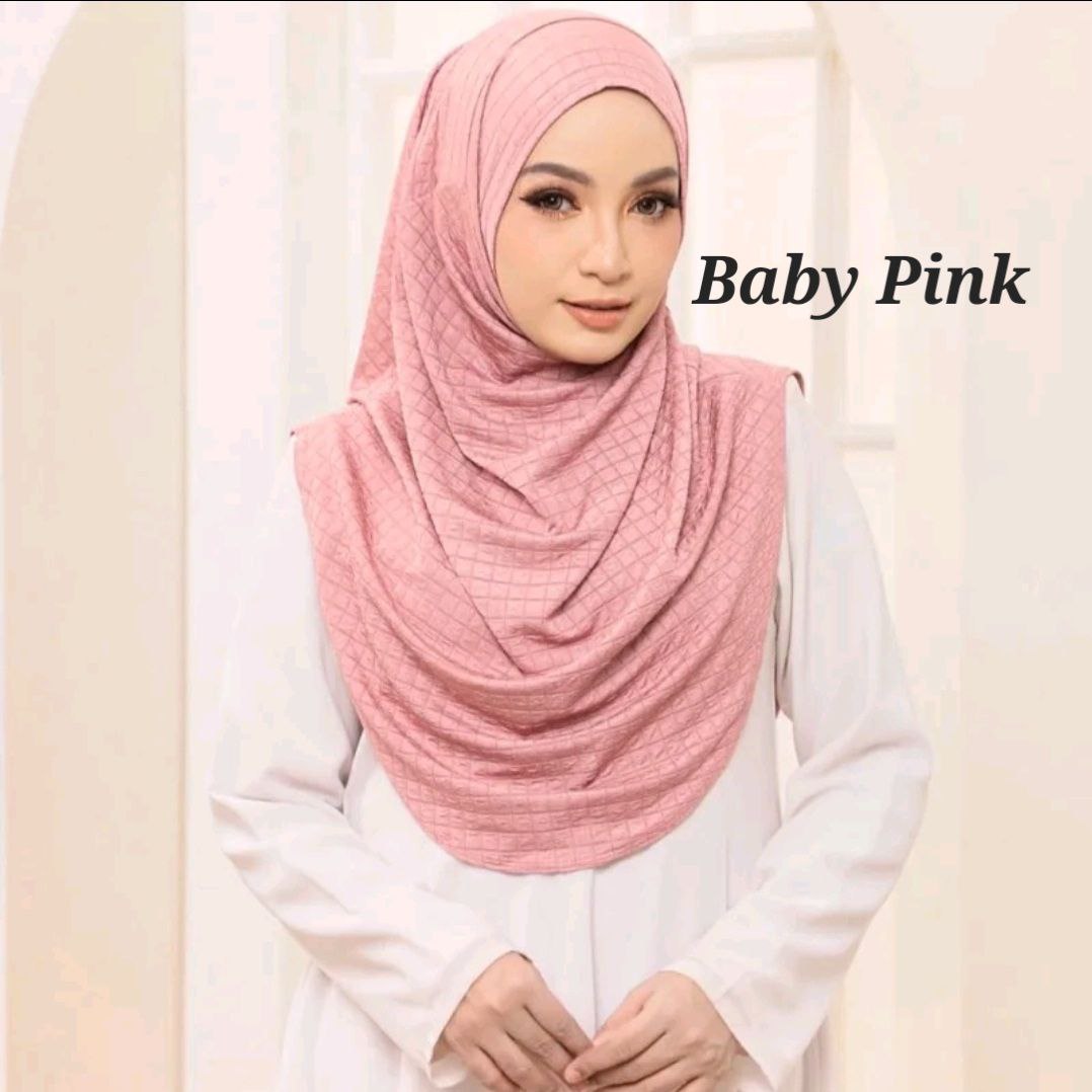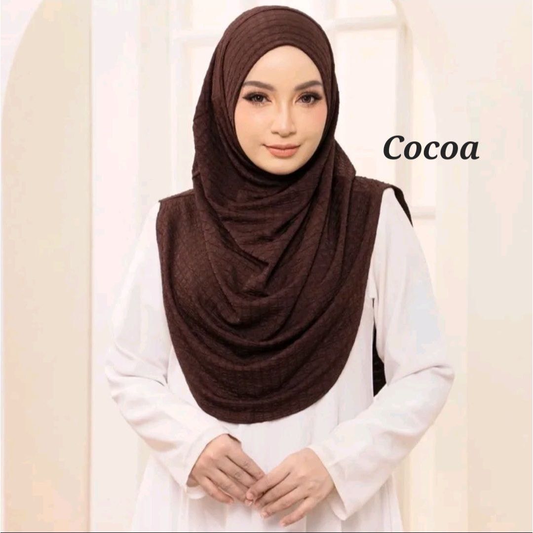 Fabric: The hijab is made from HQ Check Box Premium fabric. This is a high-quality material with a structured yet soft feel. The "Waffle" pattern likely refers to a trendy, geometric print that adds a modern touch to the classic hijab style. Ironless material.