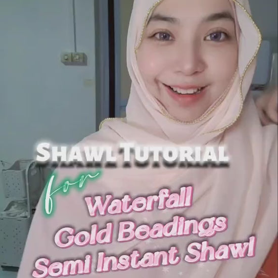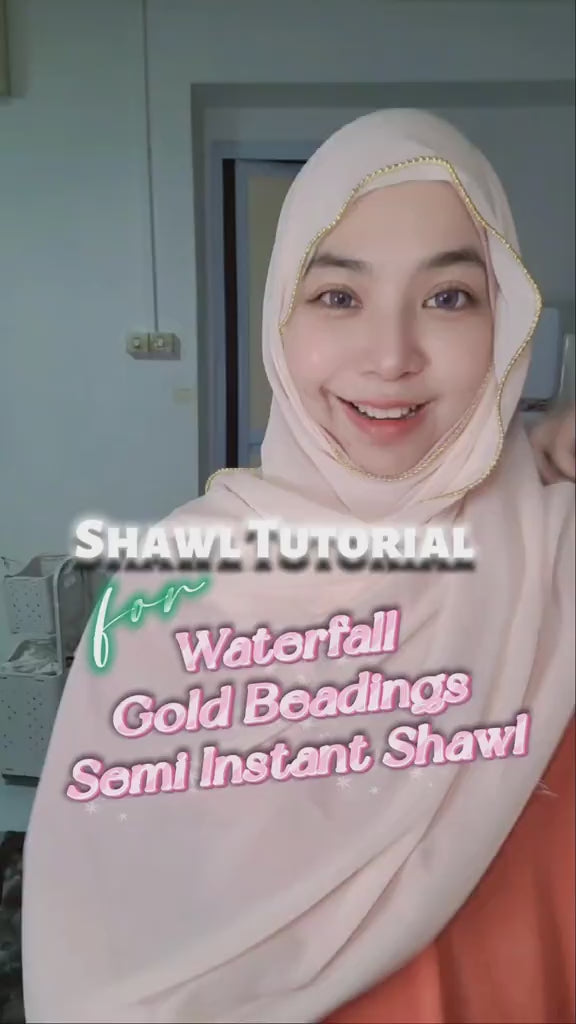 The Waterfall Gold Beadings Semi Instant Shawl features delicate gold beadwork along its border, adding a touch of elegance to its soft pastel chiffon fabric. Its lightweight, semi-transparent design offers graceful draping, ideal for layering with an inner neck garment. Perfect for those seeking a refined accessory that combines subtle shimmer with comfortable wear.